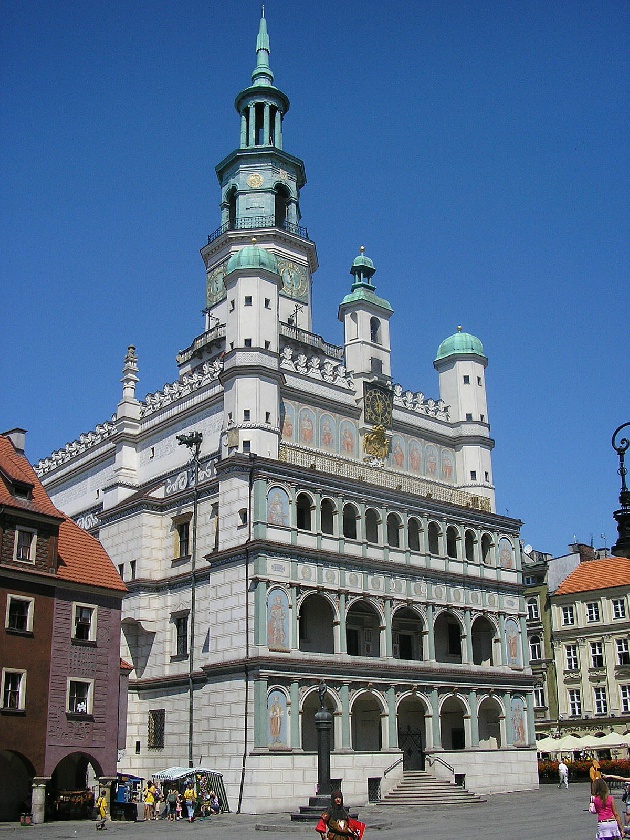 На центральной площади Познани возвышается Ратуша, построенная в стиле ренессанса – пример искусства старых мастеров. Ежедневно в полдень на башне Ратуши появляются фигурки двух козлят – по преданию они спасли Ратушу от пожара. Сейчас это символ Познаня и его жителей, очень находчивых и упорно стремящихся к цели.
