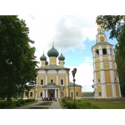Главная часть исторического центра города - Угличский кремль. Кирпичные княжеские палаты были возведены удельным князем углицким Андреем в конце XV века. Главный собор Углича - Спасо-Преображенский - это ещё одна жемчужина кремля. Внутри храма сохранились необычные фрески, выполненные угличскими мастерами XIX века, они копировали манеру письма итальянских живописцев эпохи Возрождения. Особого внимания заслуживает деревянный резной золочёный иконостас, созданный в 1860 году. На территории кремля расположен историко-архитектурный и художественный музей - один из старейших на Верхней Волге.