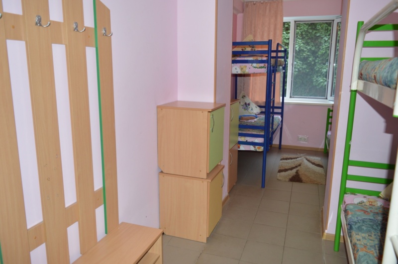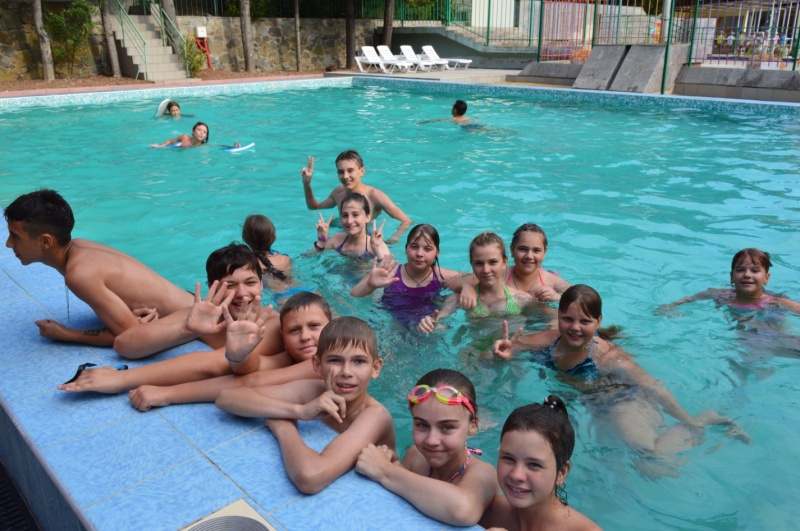 собственный, оборудованный, мелкогалечный, в 800 м от спальных корпусов. Детей на пляж доставляют комфортабельные собственные автобусы.